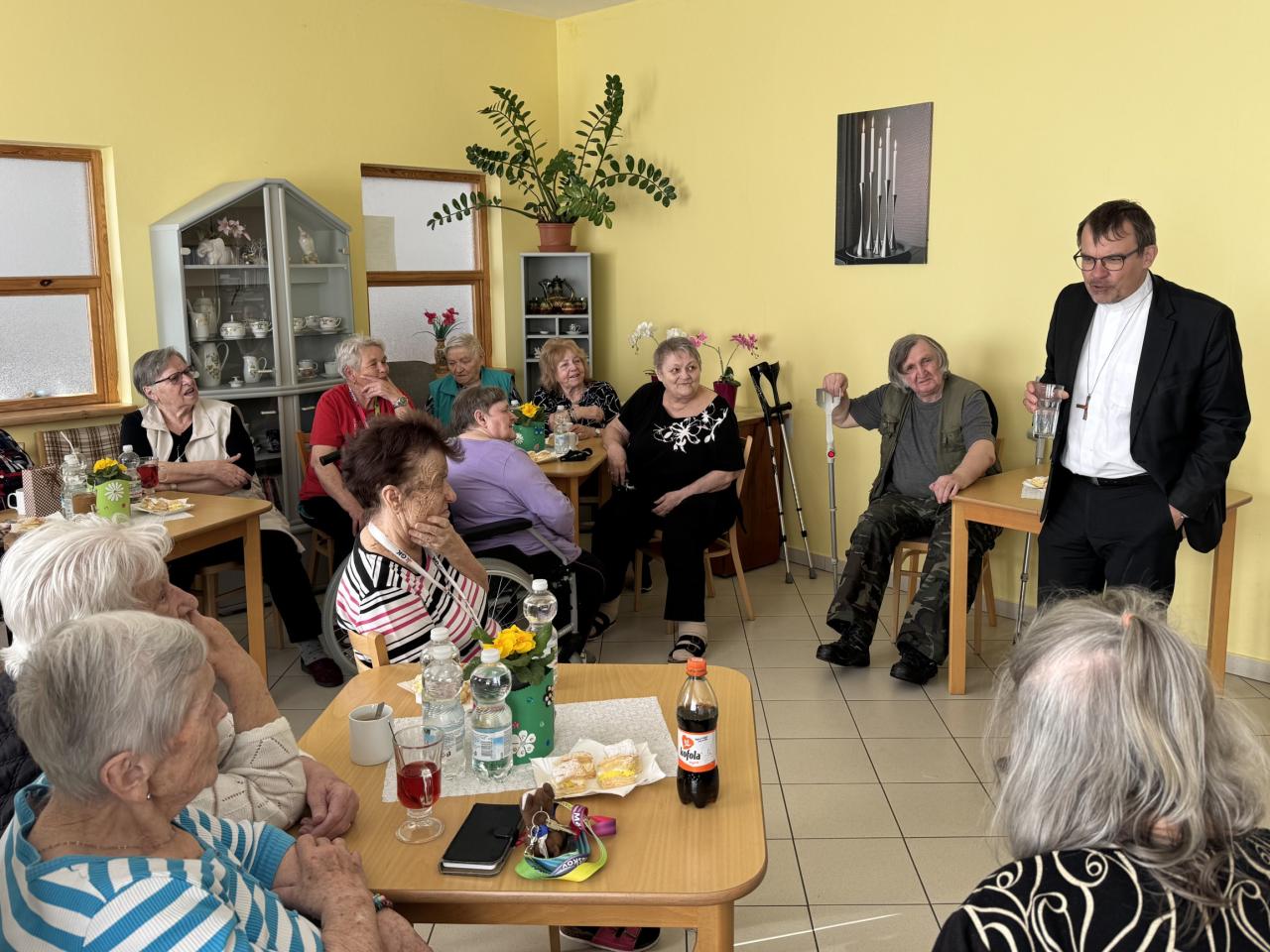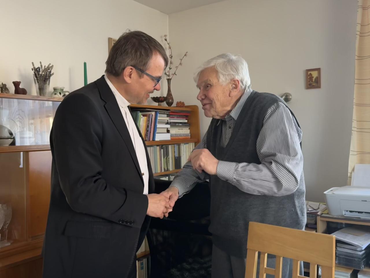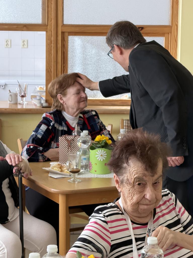 Srdečné přijetí čekalo pana biskupa v domově pro seniory, kde besedoval s klienty i personálem a navštívil také imobilní občany v jejich domovech.